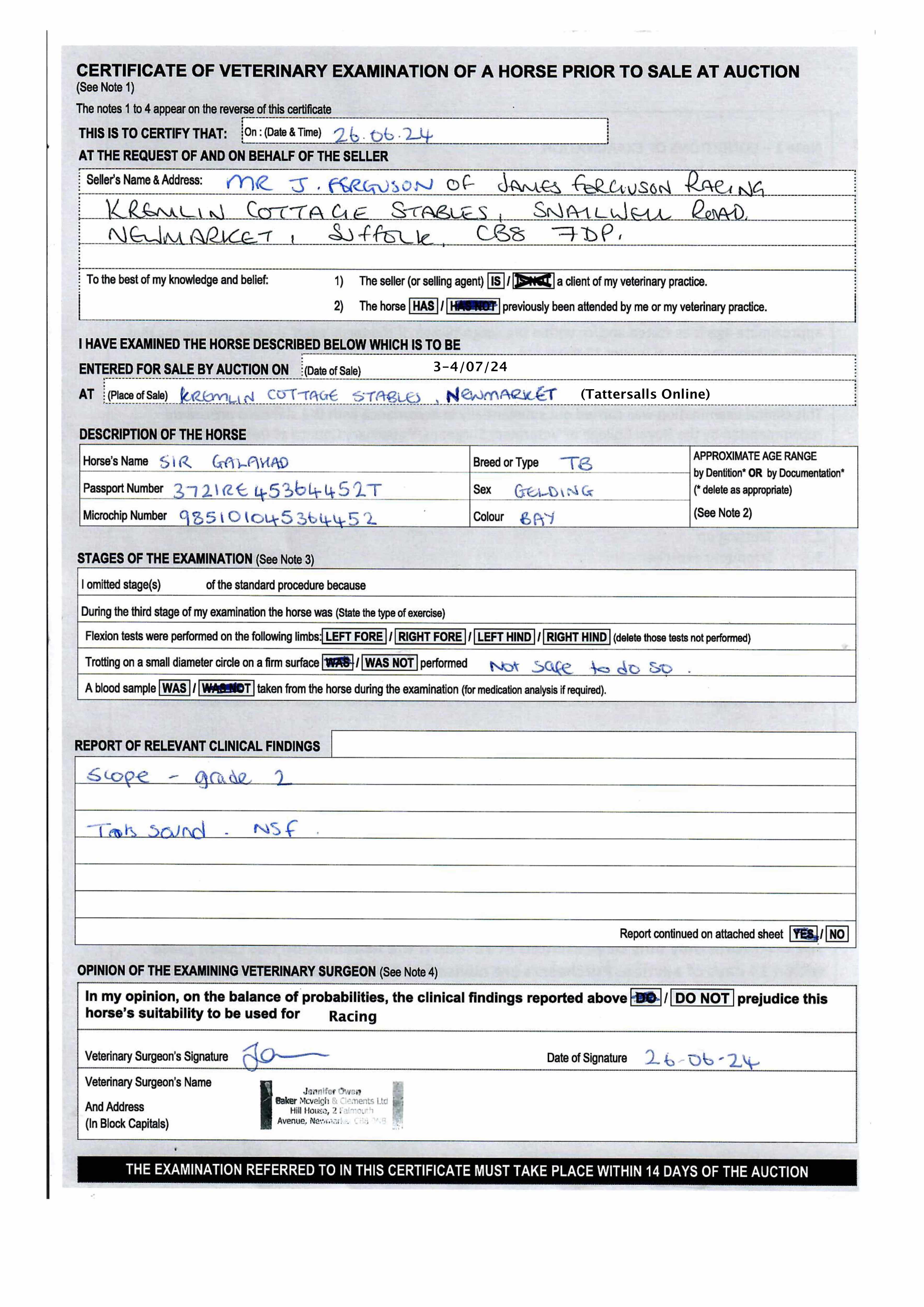 For time sensitive requests please call Tattersalls on +44(0)1638665931