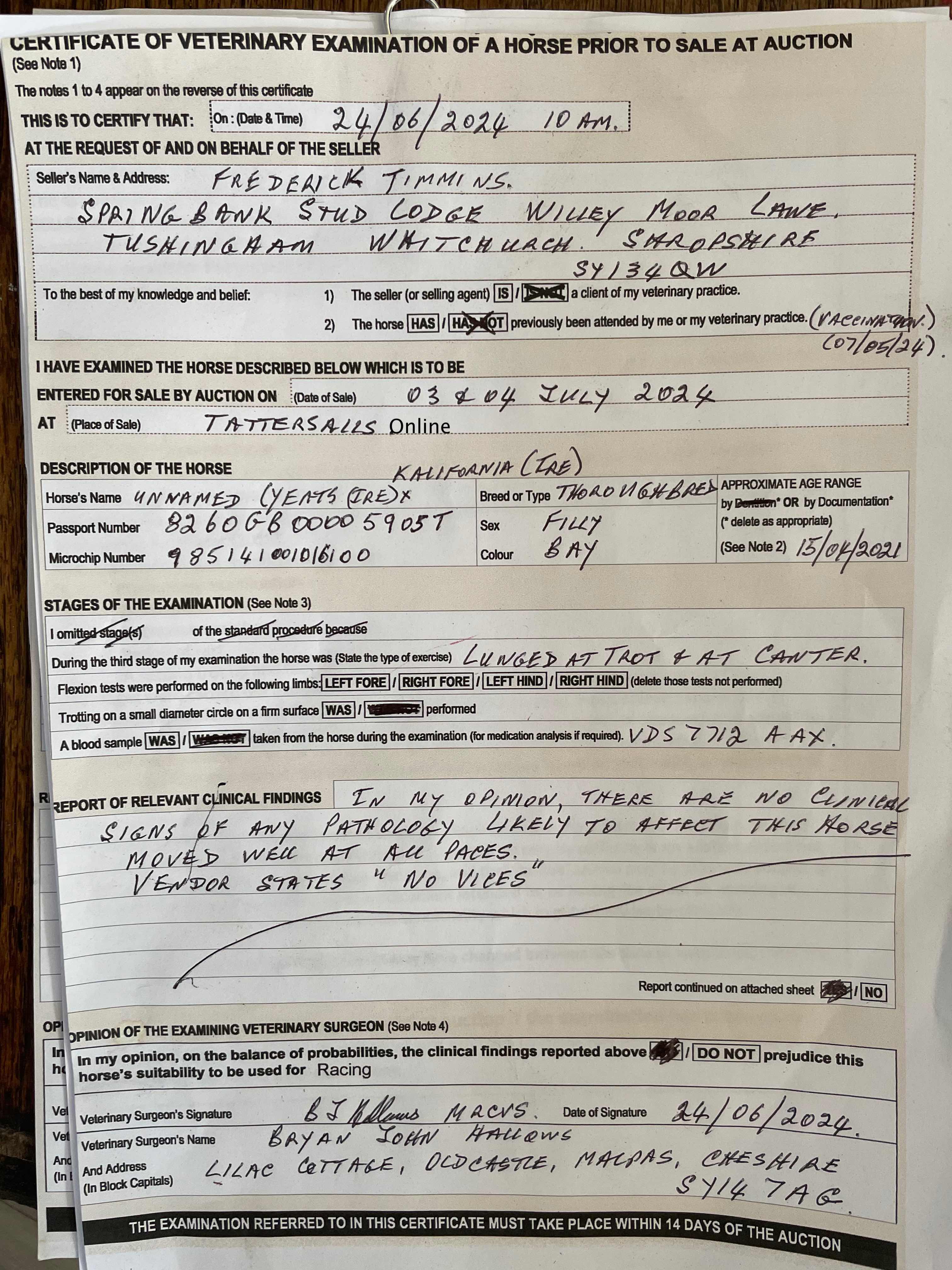 Vendor's Notes: Well handled Untried filly. Selling due to being overstocked.